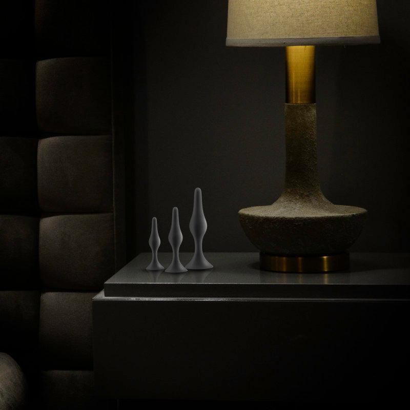 Anal Adventures Platinum Silicone Beginner Plug Kit - Black Butt Plug Kit - Set of 3 Sizes