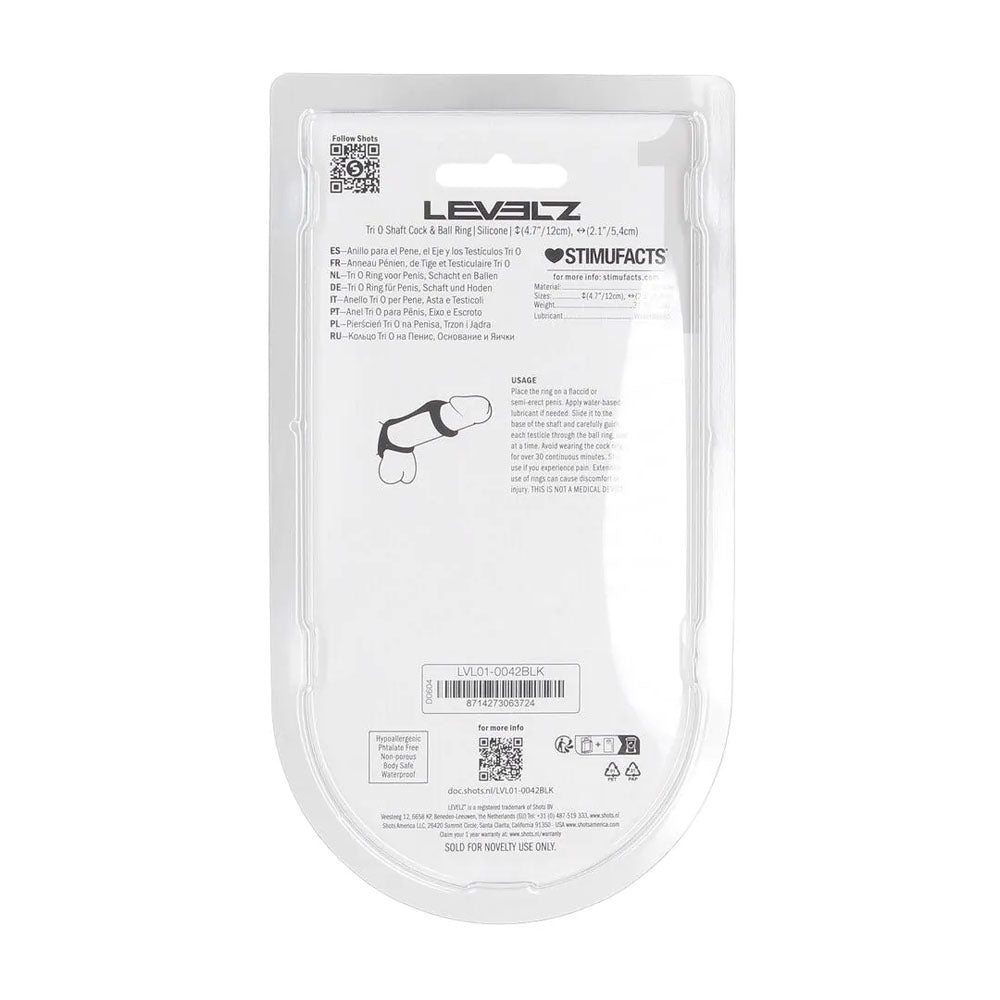LEVELZ Tri O Silicone Shaft Cock & Ball Ring - Black Cock & Balls Ring