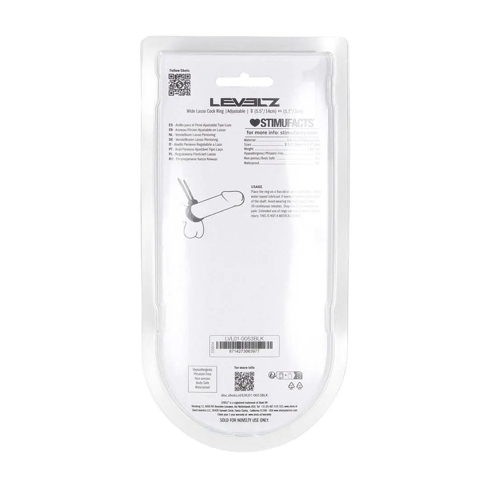 LEVELZ Wide Adjustable Silicone Lasso Cock Ring - Black Adjustable Cock Ring