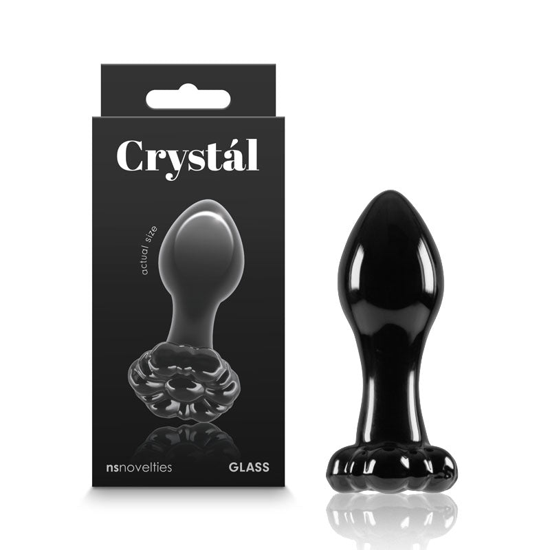 Crystal Flower - Black - Black 9 cm Glass Butt Plug