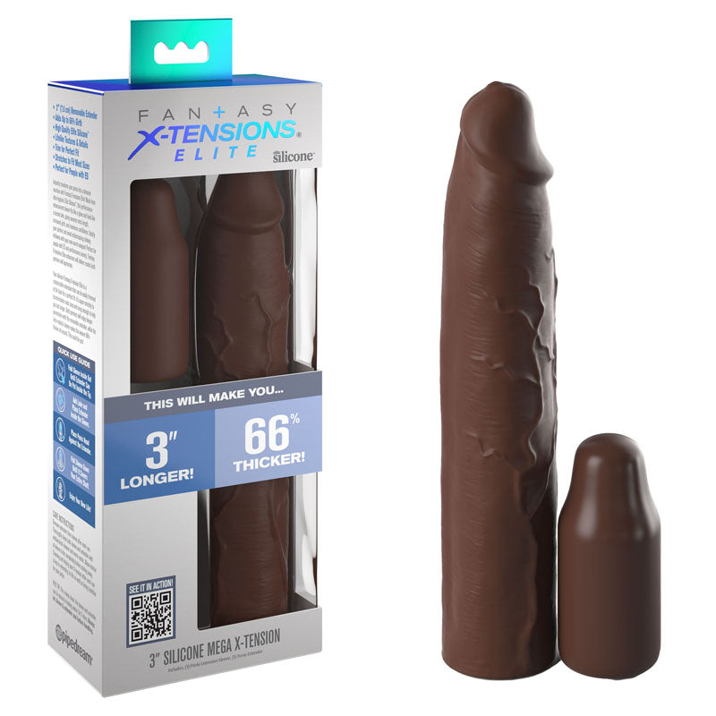 Fantasy X-Tensions Elite 3'' Silicone Extension - Brown - Brown 7.6 cm Penis Extender Sleeve